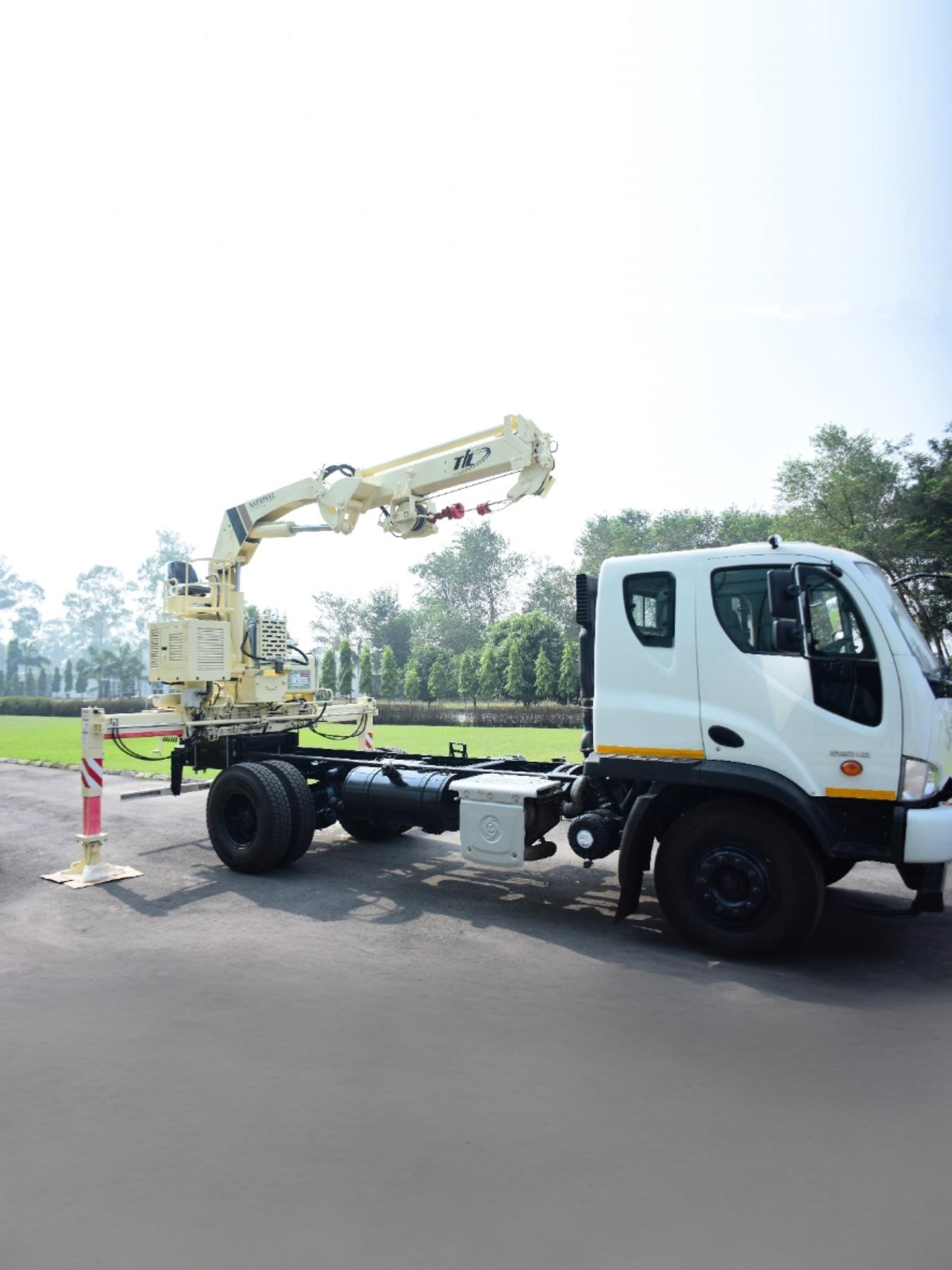An articulating crane, also known as a knuckle boom crane, is a type of crane that uses articulated (jointed) arms or booms to lift and move heavy loads. The arm of the crane has multiple segments that are connected by "knuckles," which allow the crane to move with high flexibility and precision. This articulation gives the crane an extended reach and the ability to lift and place loads in tight or difficult-to-access spaces. Key Features of an Articulating Crane: Articulated Arms: The crane has multiple sections that are connected by joints, similar to a human arm with elbow joints. These allow the crane to bend and extend, providing versatile movement. Compact Design: Articulating cranes are often more compact than traditional cranes, making them ideal for use in confined spaces, urban environments, or for loading and unloading from trucks. Hydraulic Systems: The crane typically uses a hydraulic system to operate the arms and extend the boom. This provides the power needed for lifting heavy loads while maintaining smooth movement. Versatile Operation: Due to its flexibility, the articulating crane can move loads horizontally, vertically, and even around corners, making it particularly useful for handling materials in locations that require a high degree of manoeuvrability. Used for Various Applications: These cranes are commonly used in construction, forestry, and transportation industries, and they are often mounted on trucks, trailers, or other vehicles for mobility.